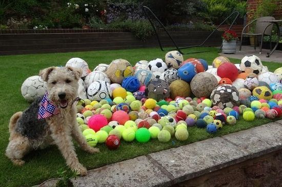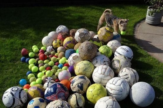 在英國德文郡,有一只名叫華夫(Waffle)的小狗酷愛收集球類,據主人Sarah Bennett回憶,從她買到這只狗時,它就喜歡收集各種球。隨著時間的流逝,華夫的收藏已經達到了近千個,其中既有彈球和高爾夫球這樣的小球,也有相當於華夫三倍大的羊角球。