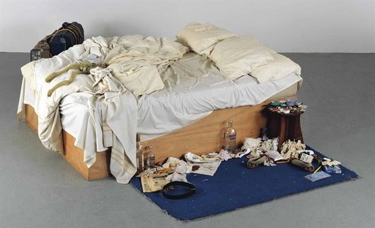 《我的床》堪稱是英國當代藝術最極端作品之一,曾在1999年入圍英國藝壇大獎的特納獎。埃明表示,《我的床》反映了跟戀人分手後,她的私人生活陷入一片混亂的時期,她每當接近這張床,總是喚起十年前的很多回憶。