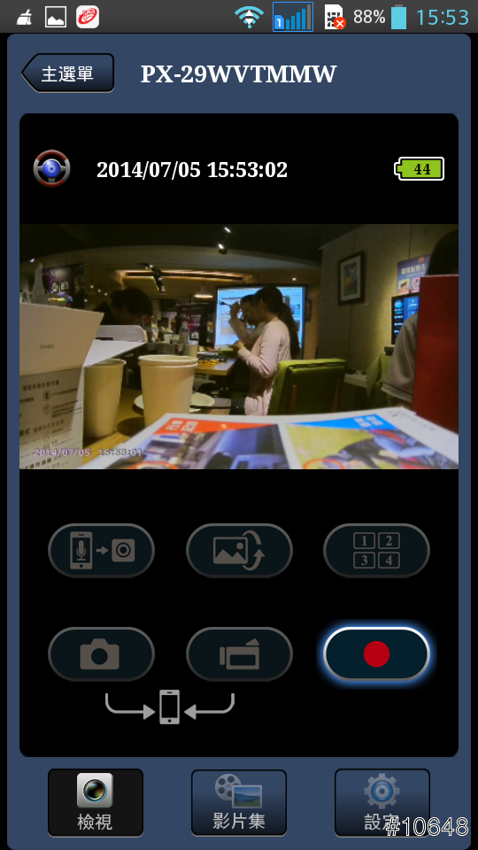 ▼按下右下角的紅色錄影鍵就可以立刻錄影,利用手機遙控就可以把X5當作監控其他房間小嬰兒之用