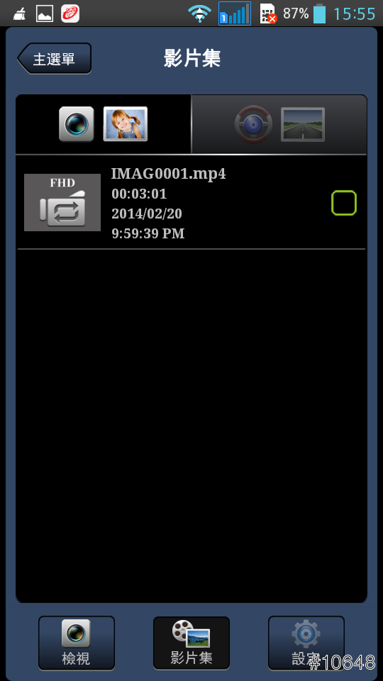 ▼最下方中間的影片集按鍵,可以由行動裝置觀看X5所錄影之影片