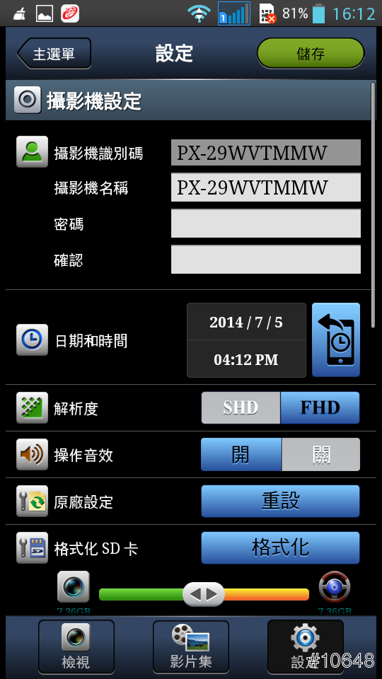 ▼最下方右邊為設定按鍵,可以設定中修改名稱,加上密碼。也可設定X5的日期時間,解析度及操作音效等。