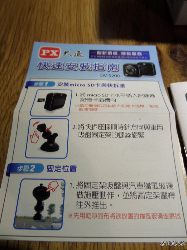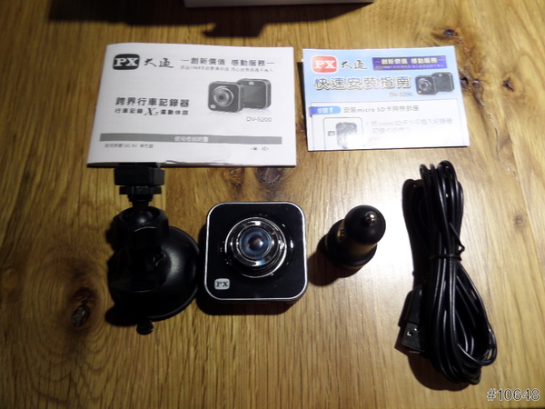 ▼打開產品包裝,裡面包括:大通X5跨界行車記錄器、兩公尺車充、吸盤車架、快速安裝與說明書一份。