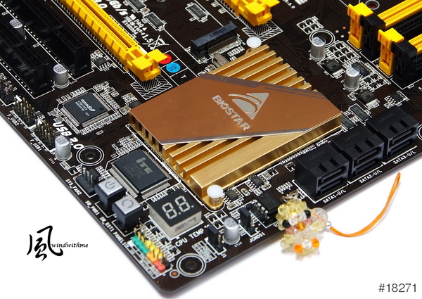 Mosfet區域與Z97晶片組的散熱模組則是使用金黃色,整體看來外觀還是不錯
