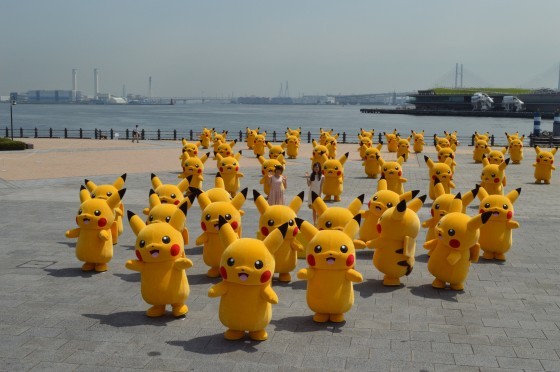 只是從照片看起來,這五十隻口袋怪獸裡面都是有人扮演的,天氣這麼熱,不怕皮卡丘中暑嗎?