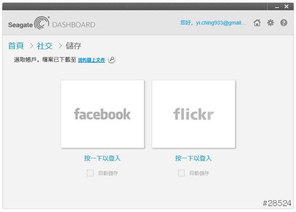 4. 透過Seagate Dashboard可備份電腦、社群網路(Facebook、Flickr)和行動裝置。