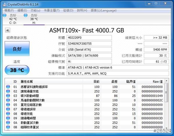 4.測試環境: USB3.0,測試軟體: CrystalDiskInfo