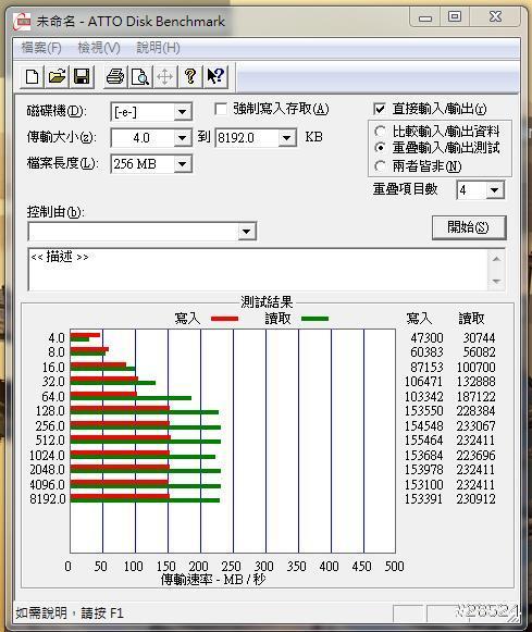 3.測試環境: USB3.0,測試軟體: ATTO Disk Benchmark