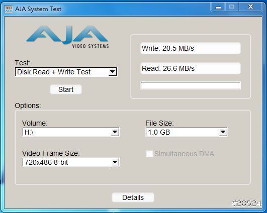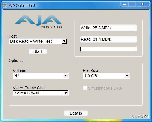 1.測試環境: USB2.0,測試軟體: AJA System Test