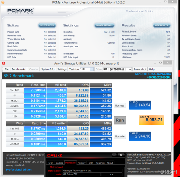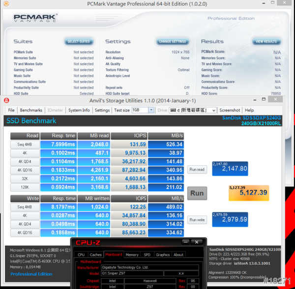 非OS系統碟,裡面沒有任何資料,在Intel Z97平台做效能測試