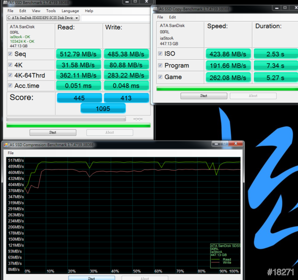 現今頂級SATA3 SSD在AS SSD Benchmark中可以拿到1100以上的分數