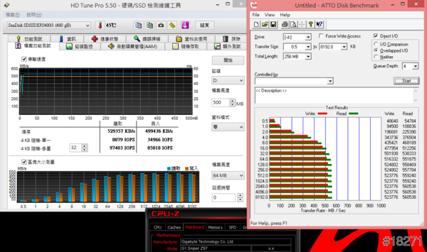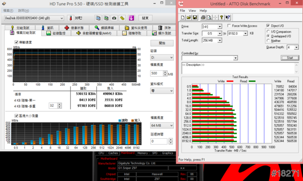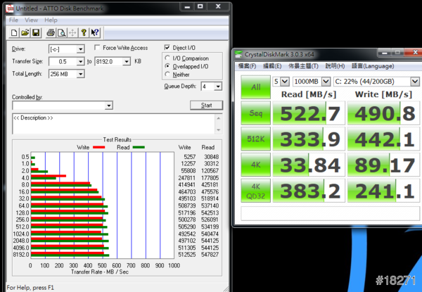ATTO DISK Benchmark在64K以上已經讓讀取與寫入都有500 MB/s以上的效能