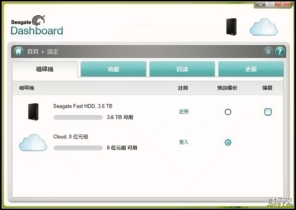 ▲選擇設定可以看到當前備份的媒介(預設是Seagate Backup Plus Fast HDD),也可以選擇雲端備份