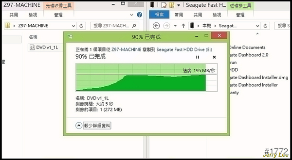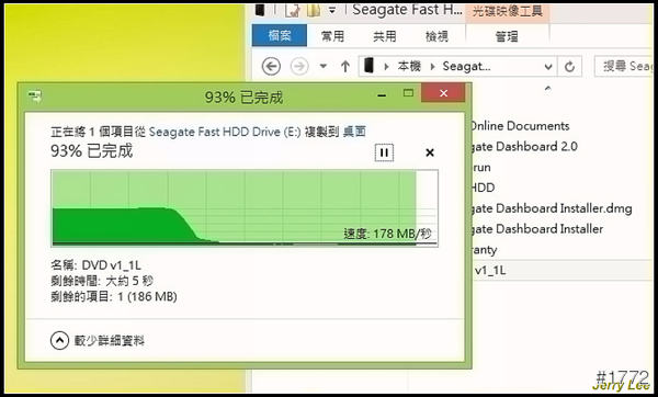 ▲從桌面拖拉一個2GB左右的ISO映像檔到Seagate Backup Plus Fast,寫入速度中後期保持在19x MB/s