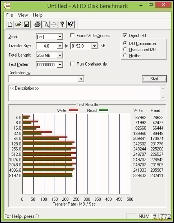 ▲ATTO Disk Benchmark在 I/O Comparison(比較輸出/入)模式,QD4 4K的表現讀取28622 寫入37962