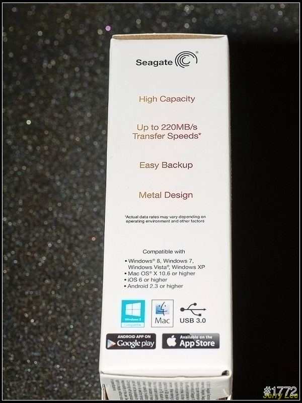 ▲右下角的Logo閃閃發亮(據官方說法Seagate Backup Plus Fast內建2顆Spinpoint™ M9T,是希捷旗下三星硬碟部門的產品。Spinpoint M9T中內建SATA 6Gb/s介面和微型致動器(microactuation),可確保快速且具一致性的硬碟機效能,同時結合NoiseGuard™與SilentSeek™技術,實現超靜音運作。)