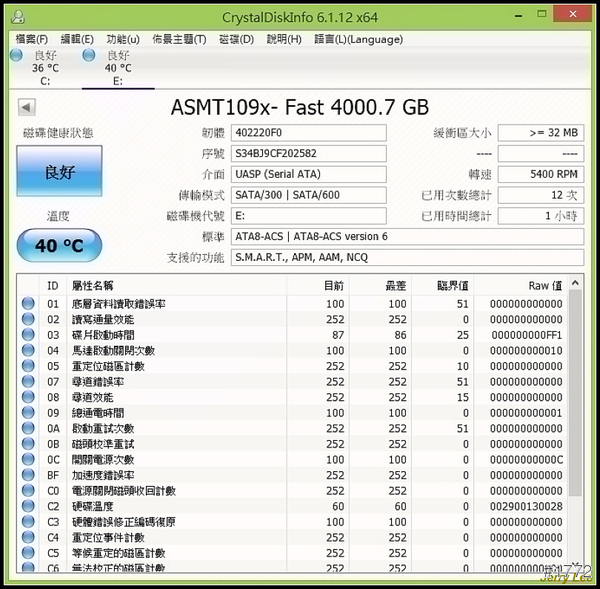 ▲可以發現控制晶片是 ASMT (ASMedia Technology) 並支援UASP傳輸的功能,雖然只有5400 RPM但是有RAID 0模式純粹用於使裝置達到最高容量與效能,並能在透過USB自行供電的情況下,提供4TB的容量和220MB/s的速度。。(UASP(USB Attached SCSI Protocol) 讓 USB 3.0 像 SCSI 傳輸協定的方式傳輸資料(全雙工),不需等前一筆資料傳輸完成後再進行傳輸資料的動作,並改善了在 CPU 的使用率、數據延遲及等待時間。)