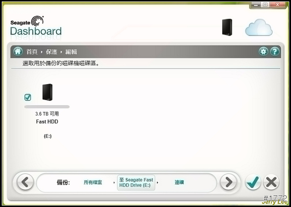 ▲接著選擇備份的硬碟,因為目前只有連接1顆,所以也沒有其他可以選擇