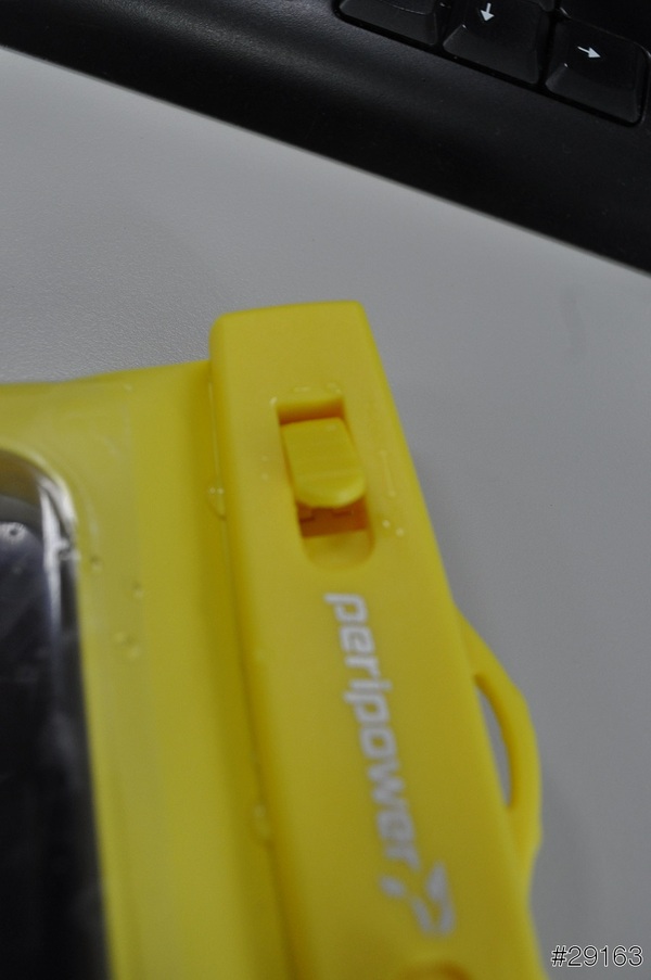 在裝入手機後,將袋口密封,然後扣上左右兩側的釦子,就瞬間讓手機有防水功能了。不過要注意一點的是,這兩個扣子個人覺得有點單薄,擔心太大力,或是使用久了,會不會有斷裂的危機,因為斷裂以後,防水袋等於報銷啦!不過看在$690份上,是覺得還好啦!
