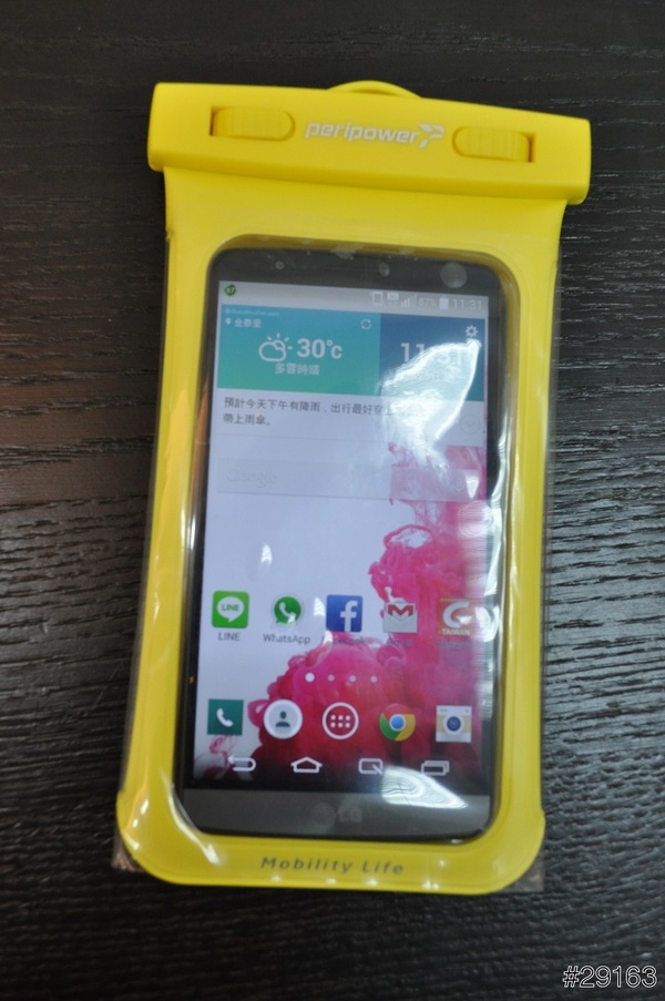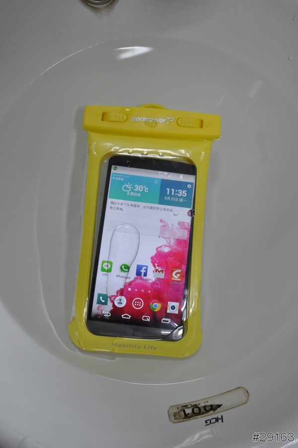 其實我覺得LG 從G2以後的手機真的很適合裝進防水袋,因為把開關螢幕鍵設計到機背去,總比有些在機頂或是機側來的好操作。