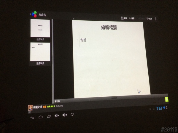 下載office的app 就能播放PowerPoint、PDF等 有接鍵盤和滑鼠就能在投影機上直接編輯檔案