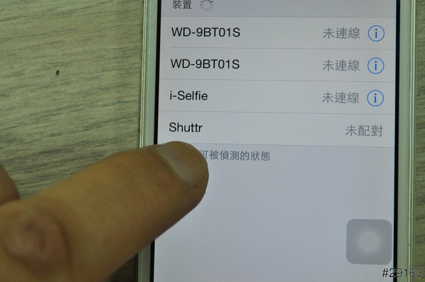 開啟iPhone藍牙,再打開自拍器開關,調到iOS的地方,就可以開始配對了。
