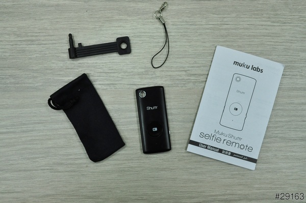裡面這顆小小的東西,就是MUKU Shuttr,包裝內還有其他小配件,包括了一個耳機孔角架、小吊飾,還有防塵套,算是蠻簡單的基本配備。