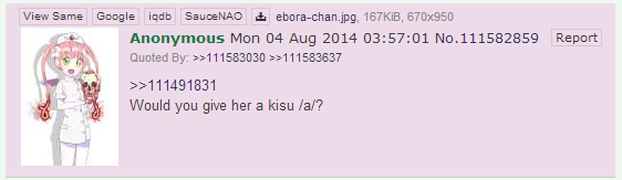 8月7日,在4Chan 上出現一則貼文,上面要求網友必須在貼文下方留言:「I Love You Ebola-Chan」,不然就會被傳染到這個致命、恐怖的伊波拉病毒。8月17日,這張圖片開始被瘋狂討論轉載,8月18號更被貼到 Reddit 的WTF討論區上,並且在首週獲得 2,600 個推文