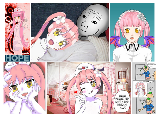 最早的 Ebola-Chan 是在今年8月4日,在 Pixiv 網站發表,而同一天在 4Chan 的動漫版也出現 Ebola-Chan 的貼文。綁著雙馬尾、穿著護士服裝的 Ebola-Chan,清純的臉蛋握著七孔流血的骷髏頭