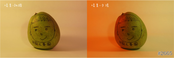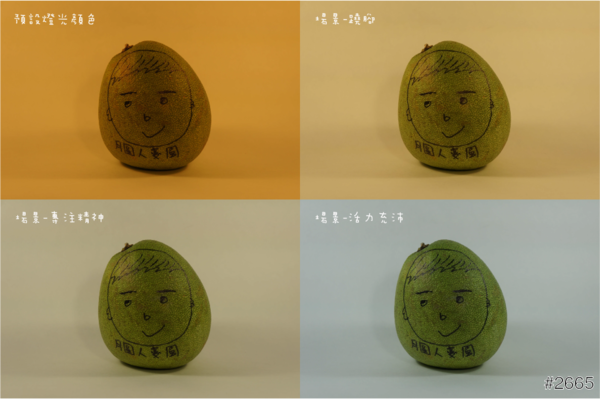 隨機試拍幾種情境的燈光,幫文旦拍照,可參考下方比較圖。