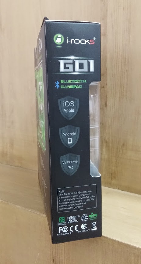 包裝側面,顯示 i-rocks G01 為可左右伸縮的遊戲把手。