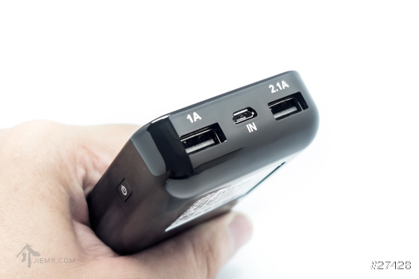 重量來說比起小字頭的行動電源,輕了不少,至少放在包包裡面負擔不大,如果要電池容量再更大的話,重量就會像帶個磚塊一樣,喪失了行動電源的便利性,側邊是電源按鈕,沒有傻傻設計成外凸的按鈕,所以可以安心放包包,不會誤按到開關浪費電量。