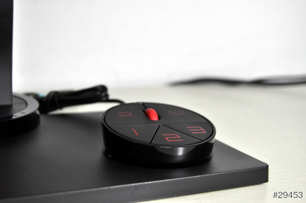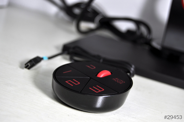 前邊小盒子裡裝的就是這個小東西,叫什麼人機控制器,可以使用這個東西調顯示器的功能表,底座上的凹槽也是用來放這個東西的。