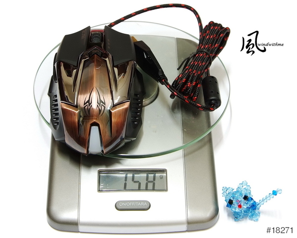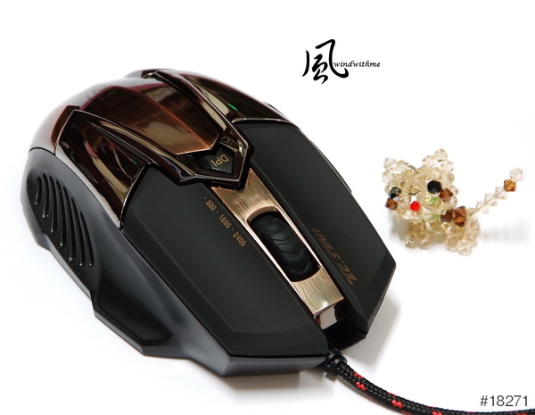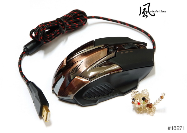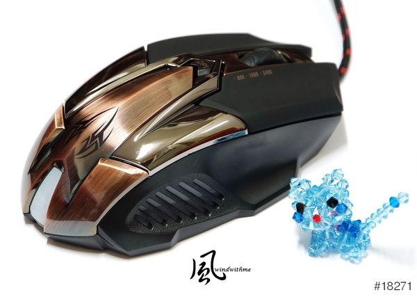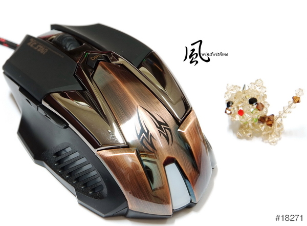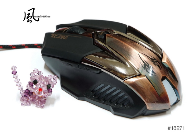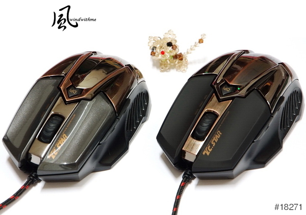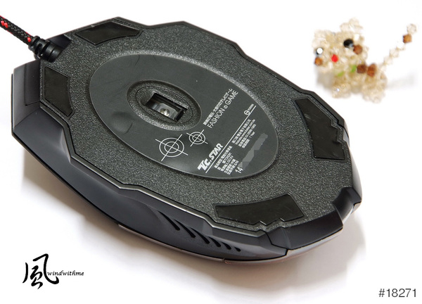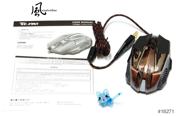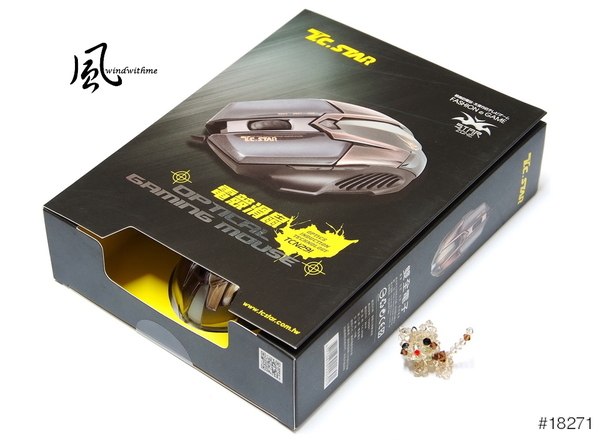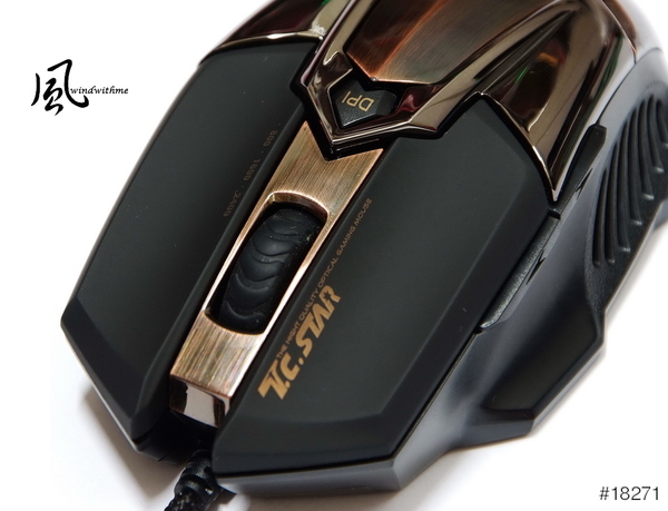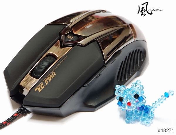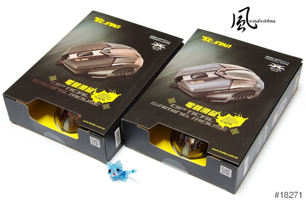 左鍵印著大字體T.C.STAR與小字體THE HIGH QUALITY OPTICAL GAMING MOUSE