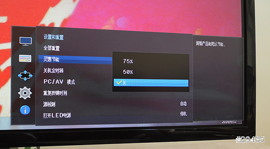 灵惠节能是一个环保节能的功能,他有两个模式可以选择50%和75%,通过亮度的变化来控制功耗,看对比图很明显