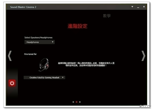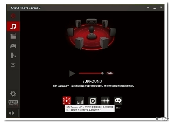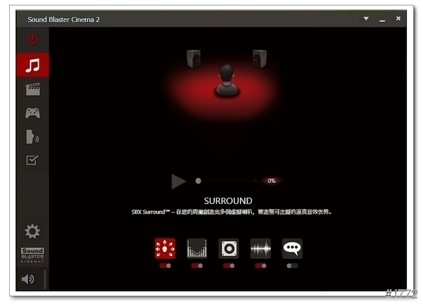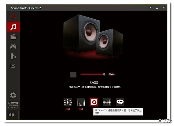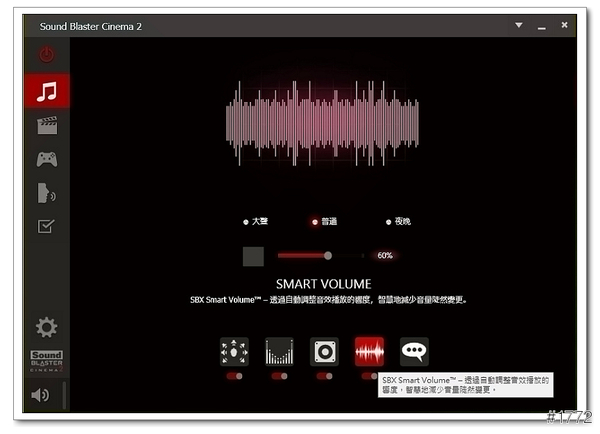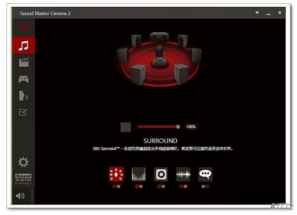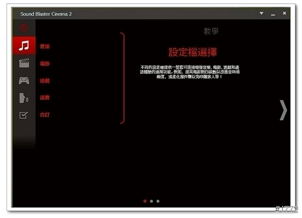 ▲Sound Blaster Cinema 2(可以依照使用的環境去變化設定檔,ex音樂、電影、遊戲…等)