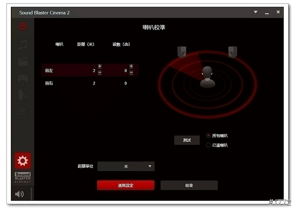▲在進階設定還可提整多聲道的距離與聲音的強度變化