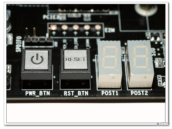 ▲我最喜歡主機板上面有安裝開機按鈕跟debug LED,這樣在超頻時便於觀察跑到開機的哪個階段