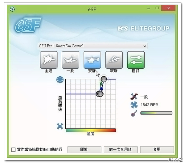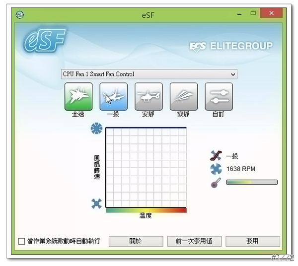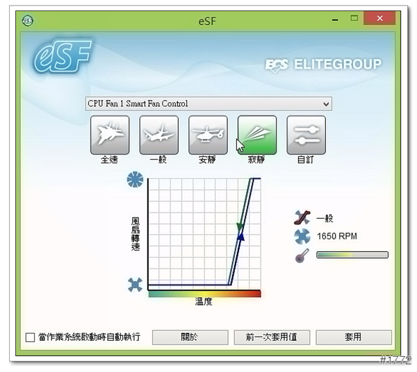 ▲eSF(易智風扇控制工具)-可以依照使用習慣,調整風扇的轉速