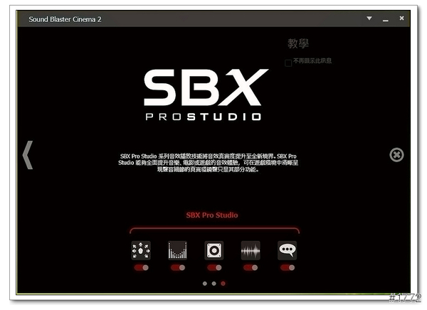 ▲SBX Pro Studio(SBX 具備環場、結晶器、低音、Dialog Plus和智慧音量等功能,能為您提供真正的劇院品質音效。)
