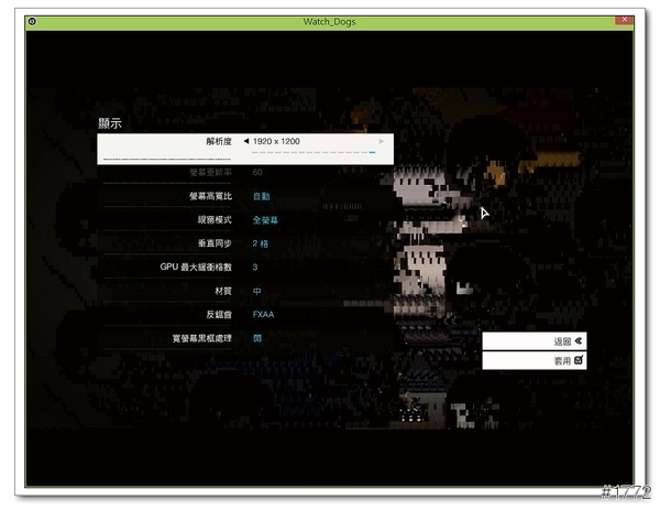 ▲顯示開到最大,反鋸齒設定主要是消除繪製物件所產生的邊緣鋸齒狀,在看門狗裡分為9種設定,選用了FXAA 的選項,全名叫做快速近似反鋸齒
