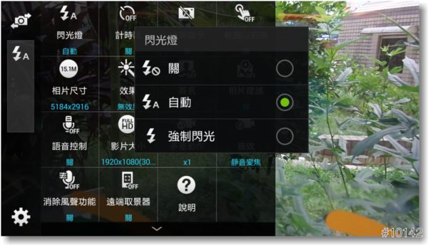 ▲『閃光燈』選項裡可以選擇關、自動或強制閃光等選項,不過出力不怎麼樣就是了