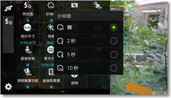 ▲『計時器』選項有關、2秒、5秒和10秒等選項,有時擔心按快門會動到相機,就可以用計時器輔助
