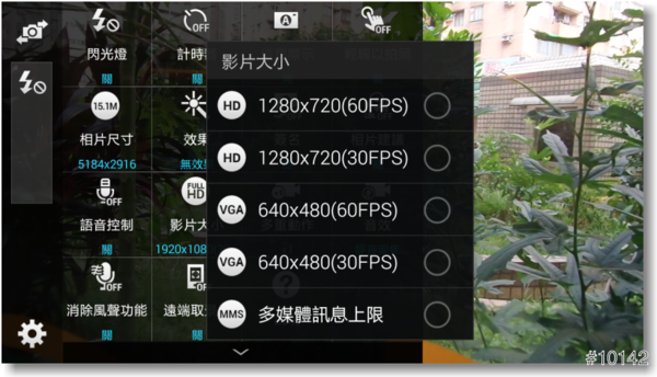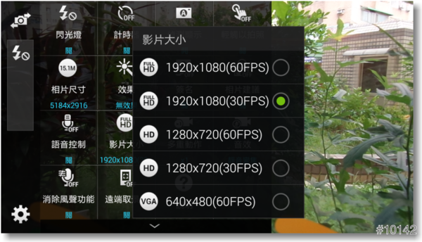 ▲『影片大小』最大拍攝解晰度為1920x1080(60FPS)的FHD規格