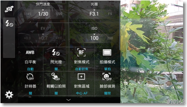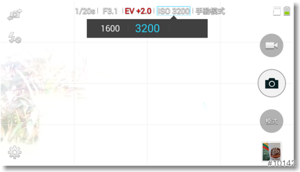 ▲ISO除了Auto外,也可調整由ISO100至ISO3200,對智慧型手機來說,算是很夠用了