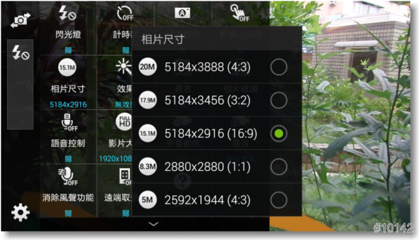 ▲『相片尺寸』最大可拍到4:3的5184x3888 20M畫素的相片