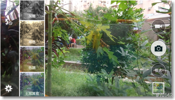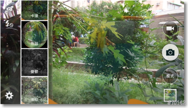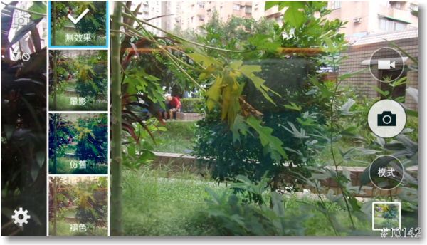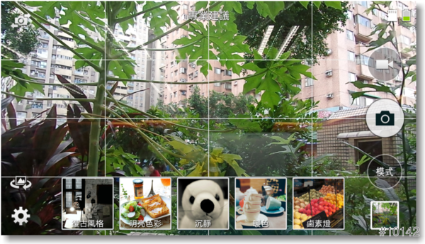 ▲開始使用相機後,介面頗像前段時間上市的Galaxy S5,主要操作在畫面的左右兩側