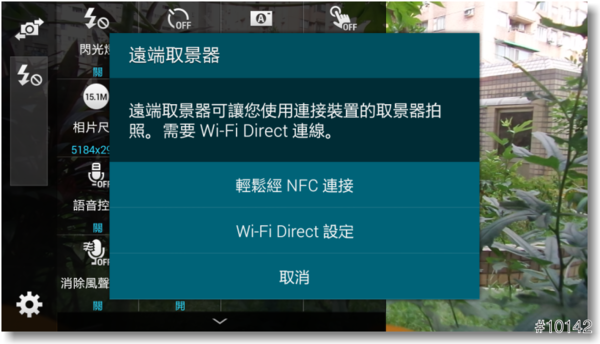 ▲『遠端取景器』則可以透過其它連接的裝置如另一部手機來取景,可以使用NFC快速連接