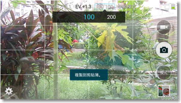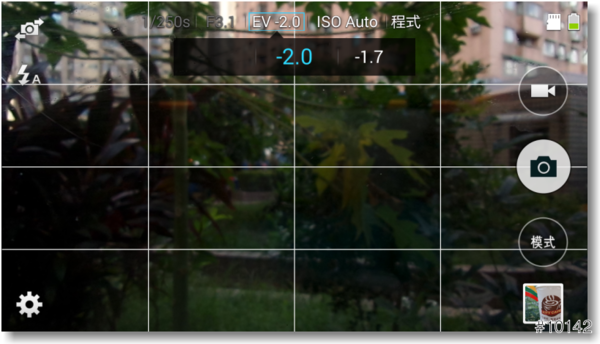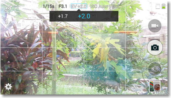▲從拍照介面的上方中間,可見有EV和ISO的選項,更多的內容將在『M模式』介紹中一併說明