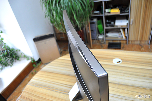 正面看可能看不出来曲面,这样是不是就有感觉了,这个弧度很美吧,屏幕和底座都是有弧度的哦,设计感非常强,当然也是有实用性的