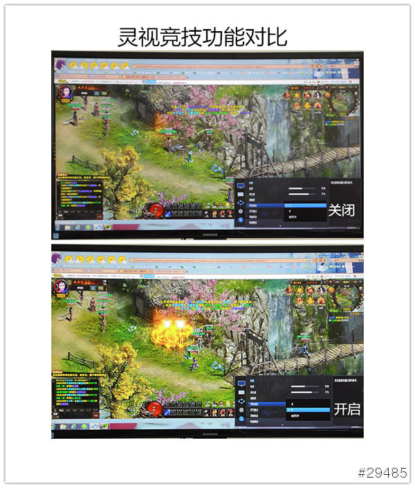 看对比图效果明显吗?开启灵视竞技之后整个画面都提亮了,颜色也更艳丽了,场景有立体感人物也更清晰了,还有就是人物快速移动也能保证无残影,哈哈真实好功能啊,喜欢游戏的朋友赶紧曲面显示器吧。